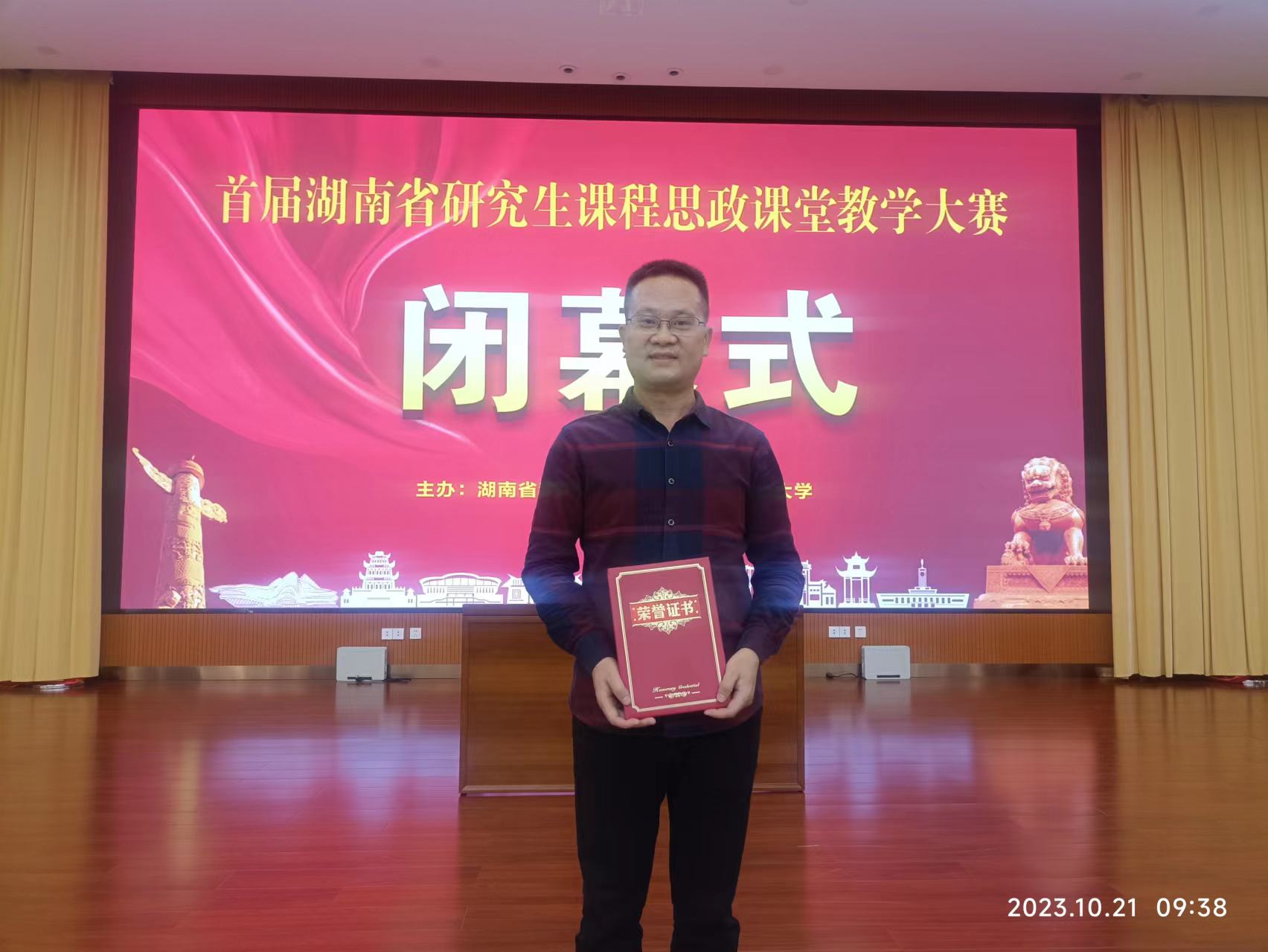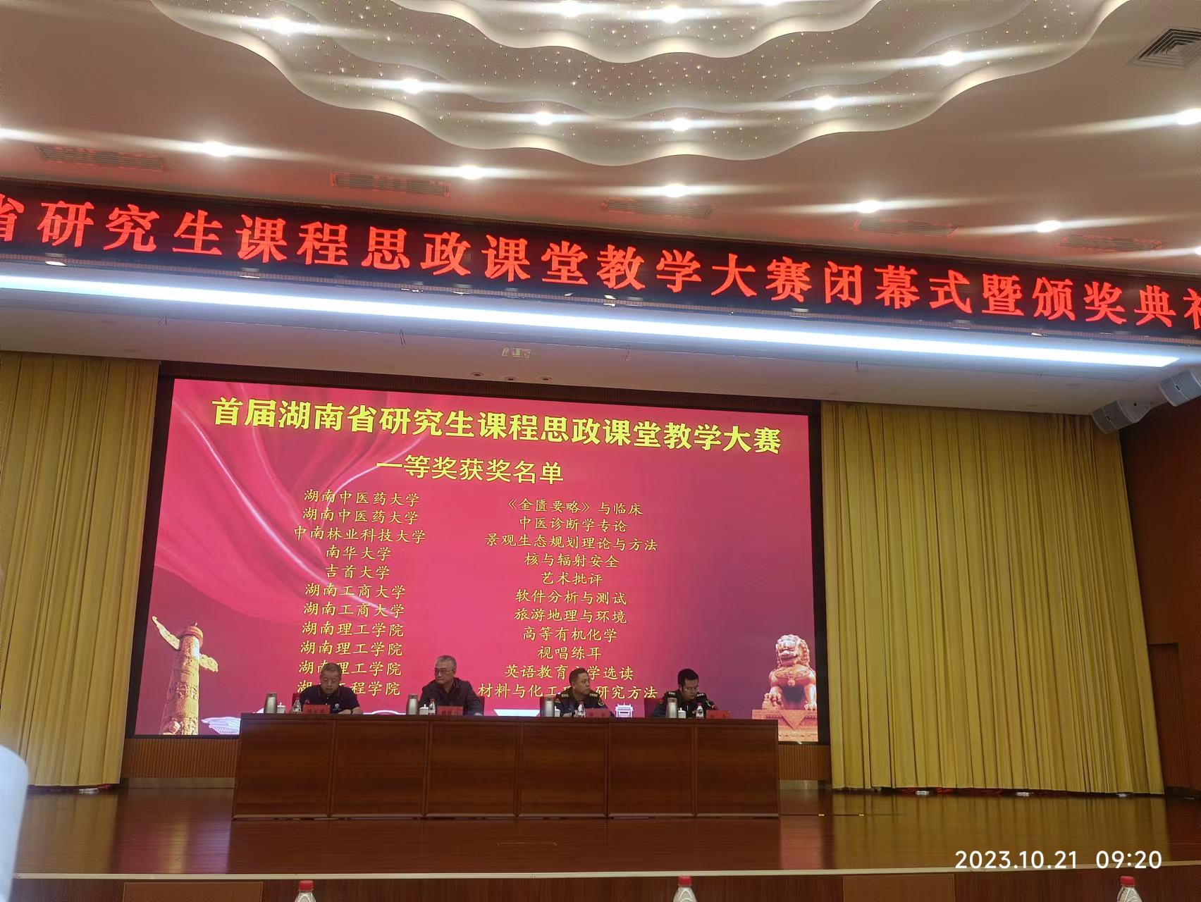 10月21日,由湖南省教育厅举办的首届湖南省研究生课程思政课堂教学大赛在国防科技大学闭幕,我校风景园林学院陈存友老师团队荣获一等奖,风景园林学院许慧老师团队、食品科学与工程张琳老师团队、计算机与信息工程学院潘丽丽老师团队荣获二等奖,材料科学与工程庞祥超老师团队荣获三等奖。