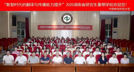 7月18日上午,由湖南省教育厅主办、中南林业科技大学承办的“数智时代的翻译与传播能力提升”2025年湖南省研究生暑期学校开学典礼在我校林学院报告厅举行。湖南省教育厅学位管理与研究生教育处二级调研员刘梦清,中南林业科技大学党委委员、副校长闫文德,全国翻译专业学位研究生教育指导委员会委员、中南大学外国语学院教授李清平,中南林业科技大学班戈学院院长邓天文出席。相关学院负责人、研究生院负责人、教师代表及本次研究生暑期学校全体学员参加。开学典礼由研究生院院长邝祝芳教授主持。