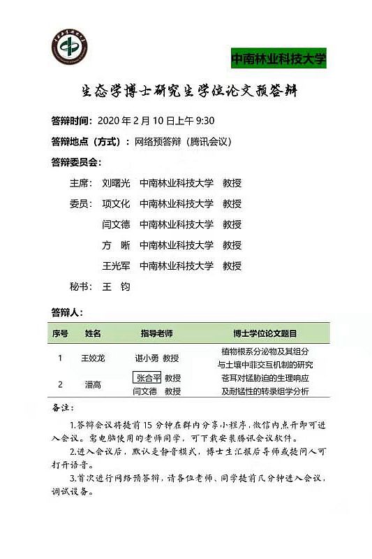 3.中南林业科技大学:博士生网络视频完成学位论文预答辩