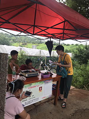 实践团队员对葡萄种植农户进行问卷调查