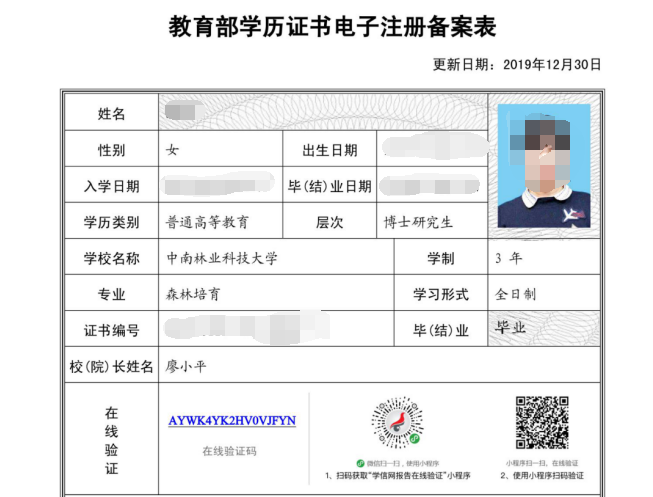 附件3:教育部学历证书电子注册备案表”复印件或网站截图示例