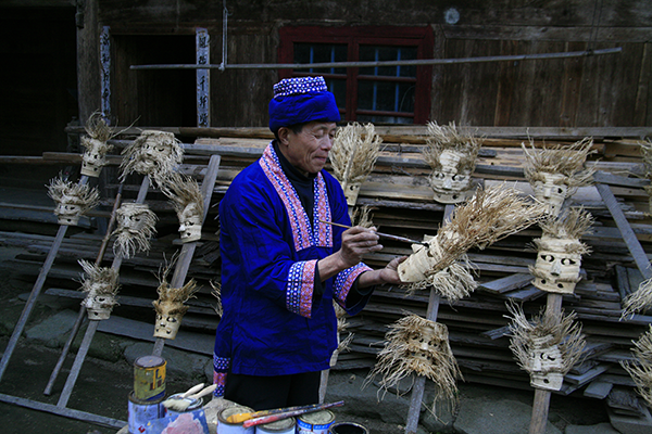 7月28日,团队成员在新宁县城拜访了省级非物质文化遗产竹根傩面的传承人唐光旭老先生,并与老先生进行了深度交谈,了解到36面竹根傩面分别来自于不同的文化背景,如梅山教、夜郎文化、上古传说、民间人物等,都有其独特的特性。图/文:周慧梅