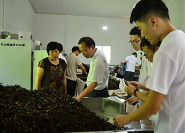 公司董事长刘珍元对博士团一行的到来表示了热烈的欢迎。她饶有兴致的向大家介绍了桑植白茶的文化、公司发展历程及拳头产品,并亲自带领大家参观了白茶制茶、加工、等级品鉴等工艺流程,让大家直观了解了中国茶文化的源远流长。刘珍元女士以农民企业家的担当,通过直接帮扶、股份合作、资产收益分红等措施,实实在在反哺脱贫攻坚和乡村振兴奉献精神,感染了博士团每位师生。