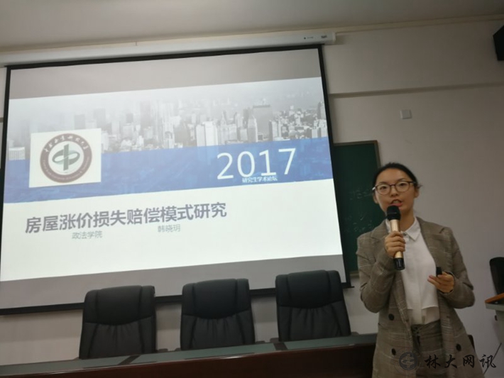10月27日晚,政法学院研究生学术论坛第二期在文综楼1105教室举行,学院党委副书记曾晓峰、研究生导师李敏老师、负责研究生工作的王蓉和伍振军老师,以及全体研究生同学参加了论坛。本次论坛由2017级研究生袁一铭主持。2016级研究生韩晓玥、2016级研究生潘姮利、2017级研究生郭姗姗分别以《房屋涨价损失赔偿模式研究》、《公司决议效力问题探析》、《八达岭野生动物园老虎伤人案之法律问题分析》为题进行了报告和分享,民商法学科带头人雷鑫教授进行点评。