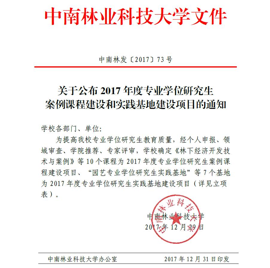 中南林业科技大学2017年度专业学位研究生案例课程项目立项表